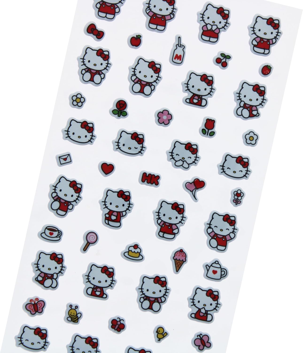 Bring charm and fun to your everyday life with this delightful Hello Kitty Pretty in Pink sticker sheet! Featuring 49 unique designs, these stickers are perfect for fans of all ages who love adding a touch of Hello Kitty's magic to their personal belongings. Each sticker is crafted from premium PVC material, giving them a puffy, raised texture that stands out with vivid colors and intricate details. Whether you're decorating your journal, customizing school supplies, or sprucing up your water bottle, these durable and versatile stickers make it easy to express your personality. As part of the officially licensed "Pretty in Pink" collection, these stickers ensure quality and authenticity, making them a must-have for Hello Kitty enthusiasts. Let your creativity shine by using these charming designs for crafting, gifting, or simply adding a cheerful vibe to your day-to-day items. With Hello Kitty’s timeless appeal, this sticker set is perfect for anyone looking to add a little extra joy to their world.