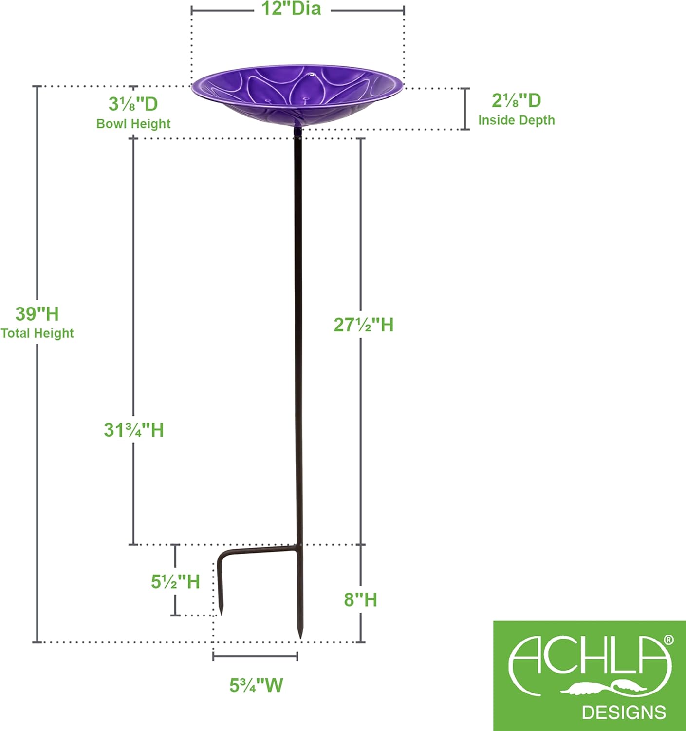 Add all-season joy to the garden, with the bright candy pop of a Lolly Birdbath. Embossed with a floral design, the brass bowl is coated with a brilliant glass enamel that will not fade in sunlight. The bowl attaches securely to a 36" wrought iron two-pronged garden stake that can be pushed directly into a garden bed, border or lawn. Birds will enjoy a safe place to cool off and drink, and gardeners will love having this artful addition to the plantings.